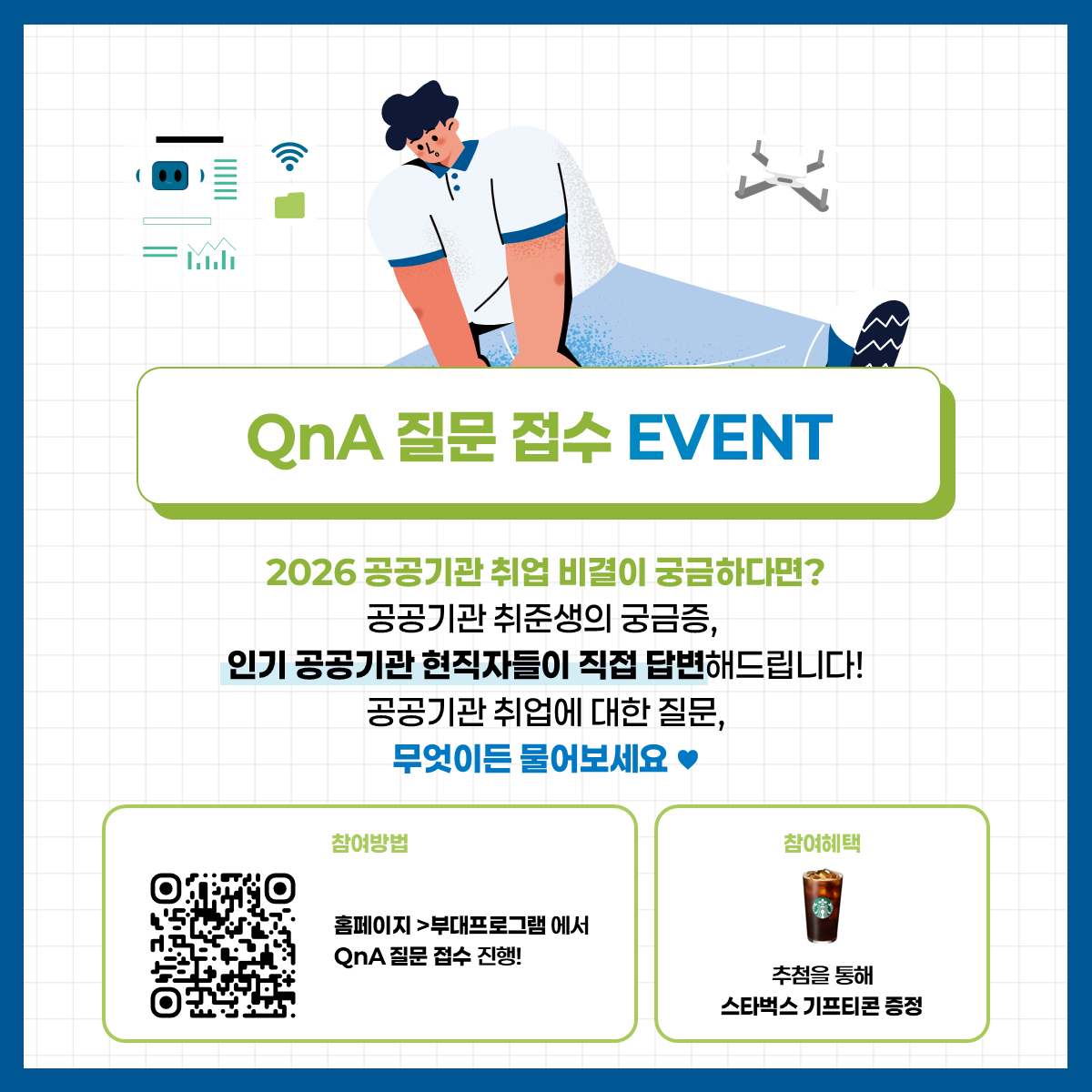 여러분의 질문을 무대에서 직접 답변해드리고, 커피 기프티콘도 드려요~!