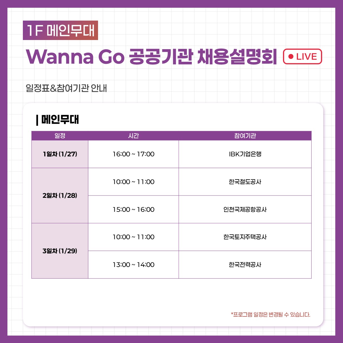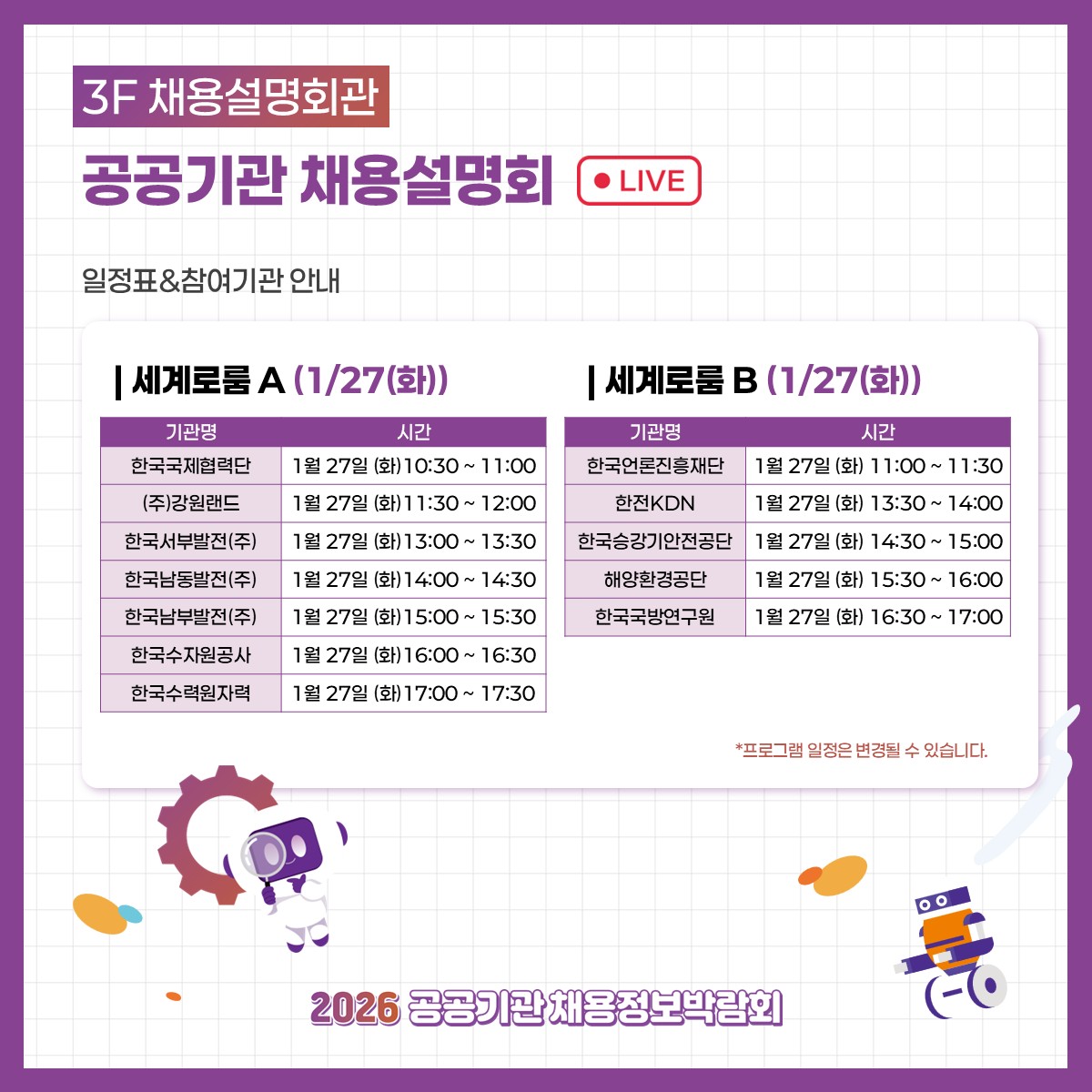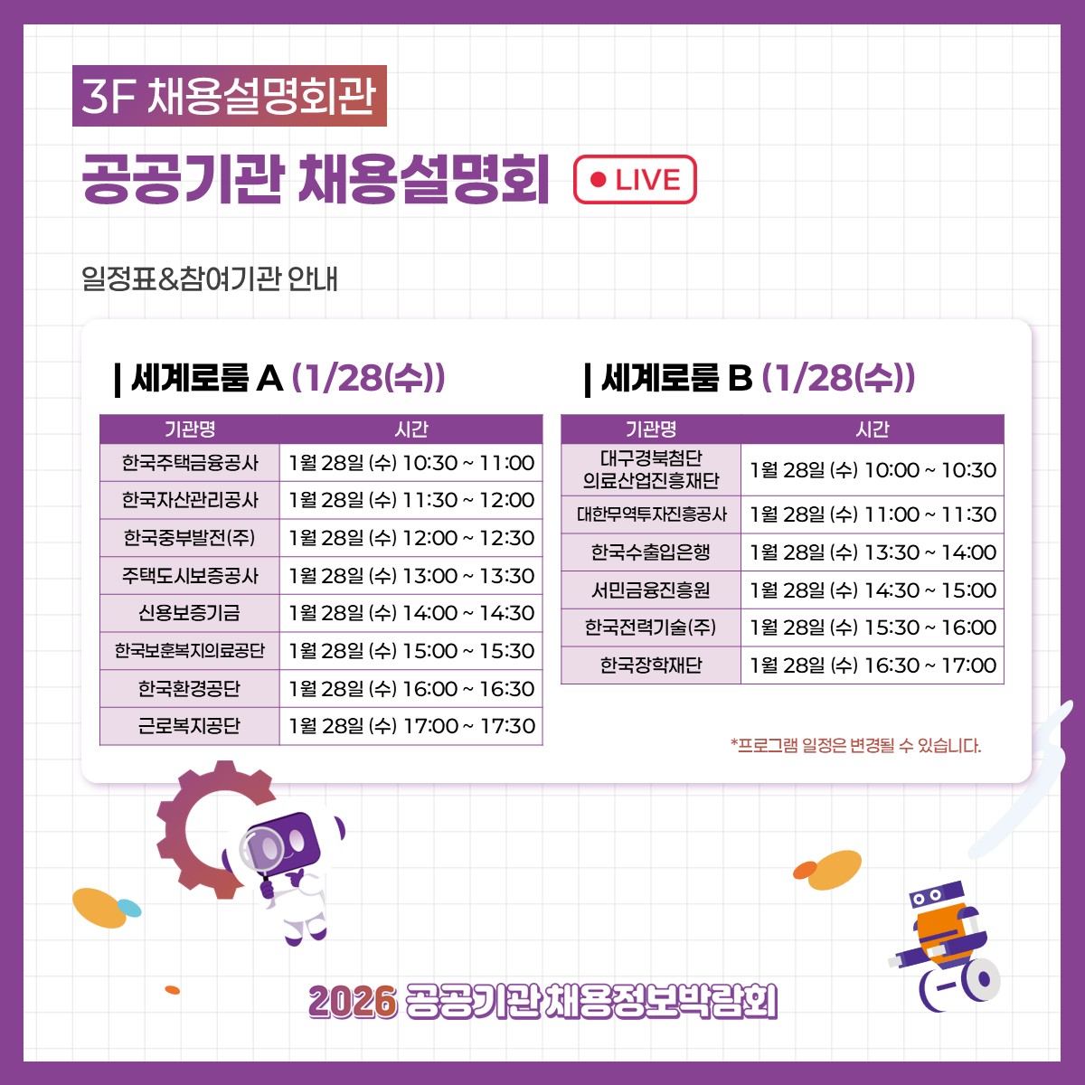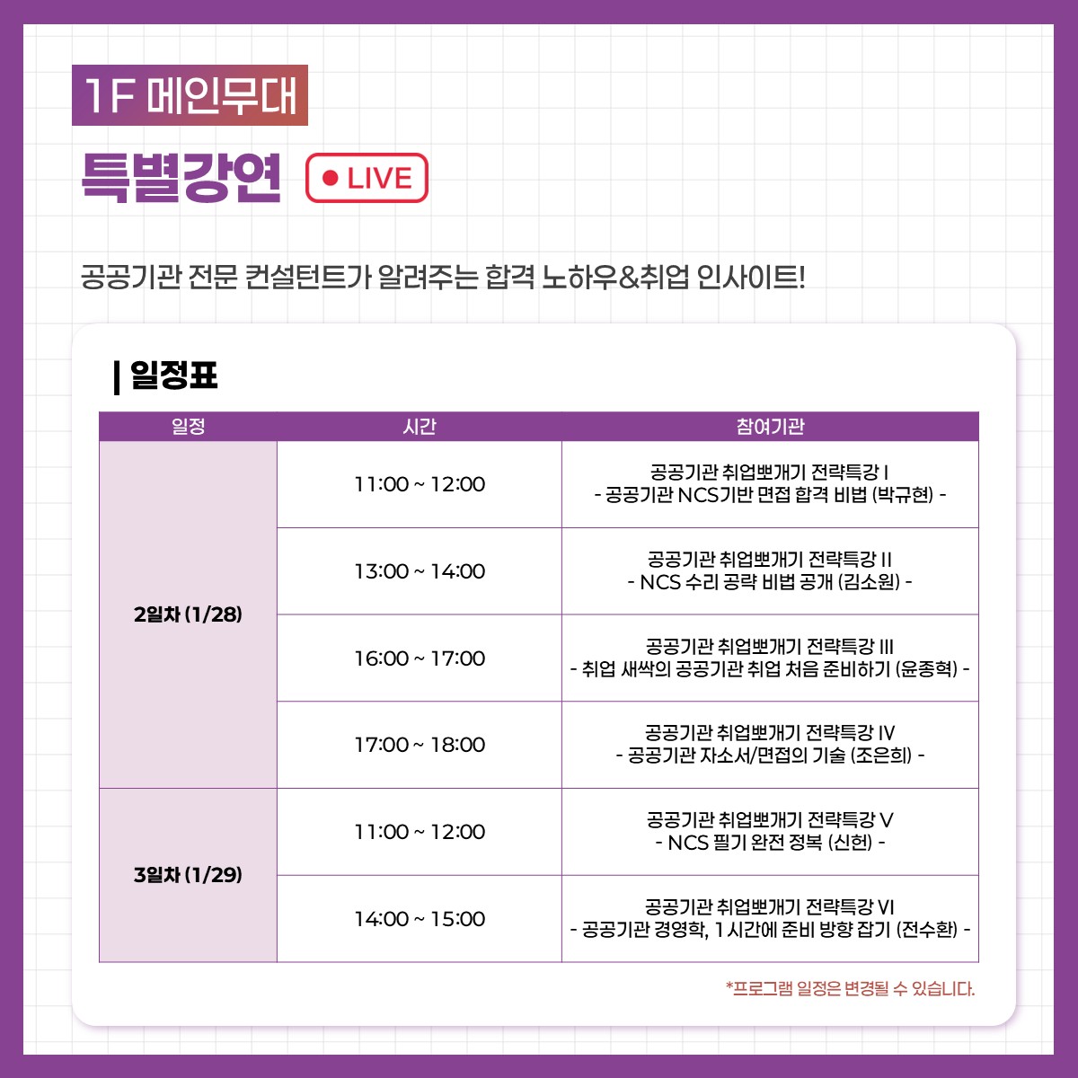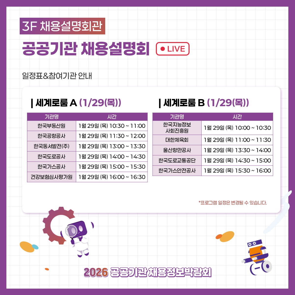 2026 공공기관 채용정보박람회 - 프로그램 전체일정 안내